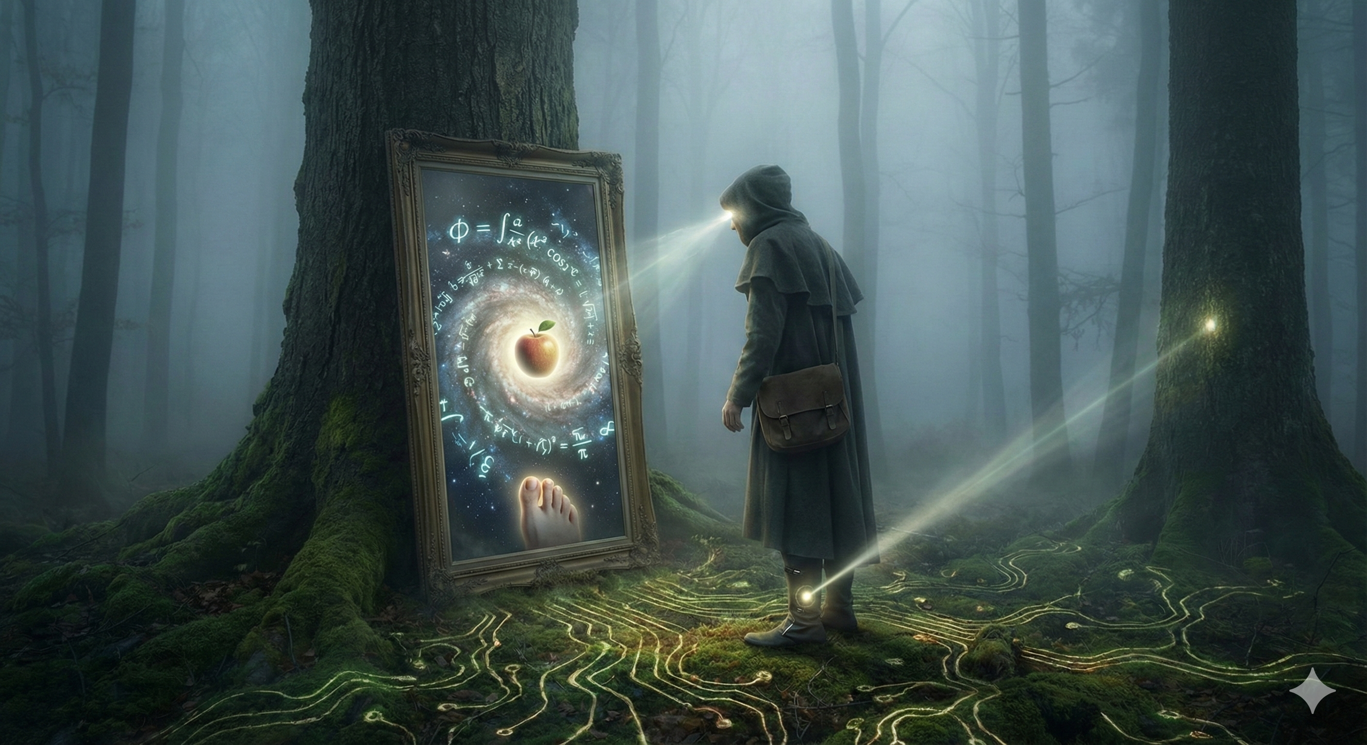Imagine a traveler walking through a dense, mist-covered forest. He is searching for the “Laws of the Woods”—the hidden rules that govern the growth of the moss and the flight of the owls. Suddenly, he trips over a silver mirror lying in the dirt. He looks into it and sees a face. “Aha!” he cries. “A new species! A forest spirit that knows the secrets of the trees!”